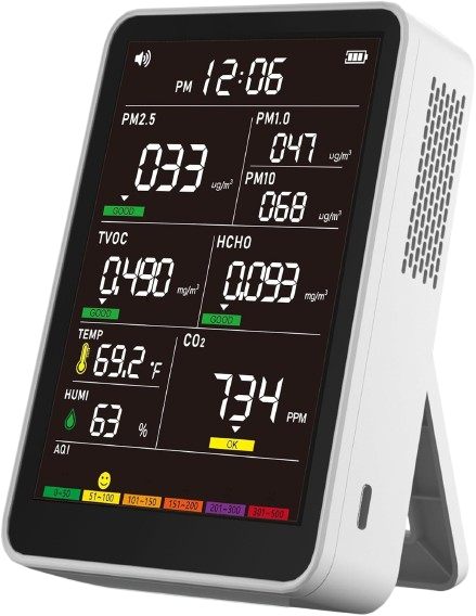 The color-coded display allows you to easily assess air quality, even from a distance.