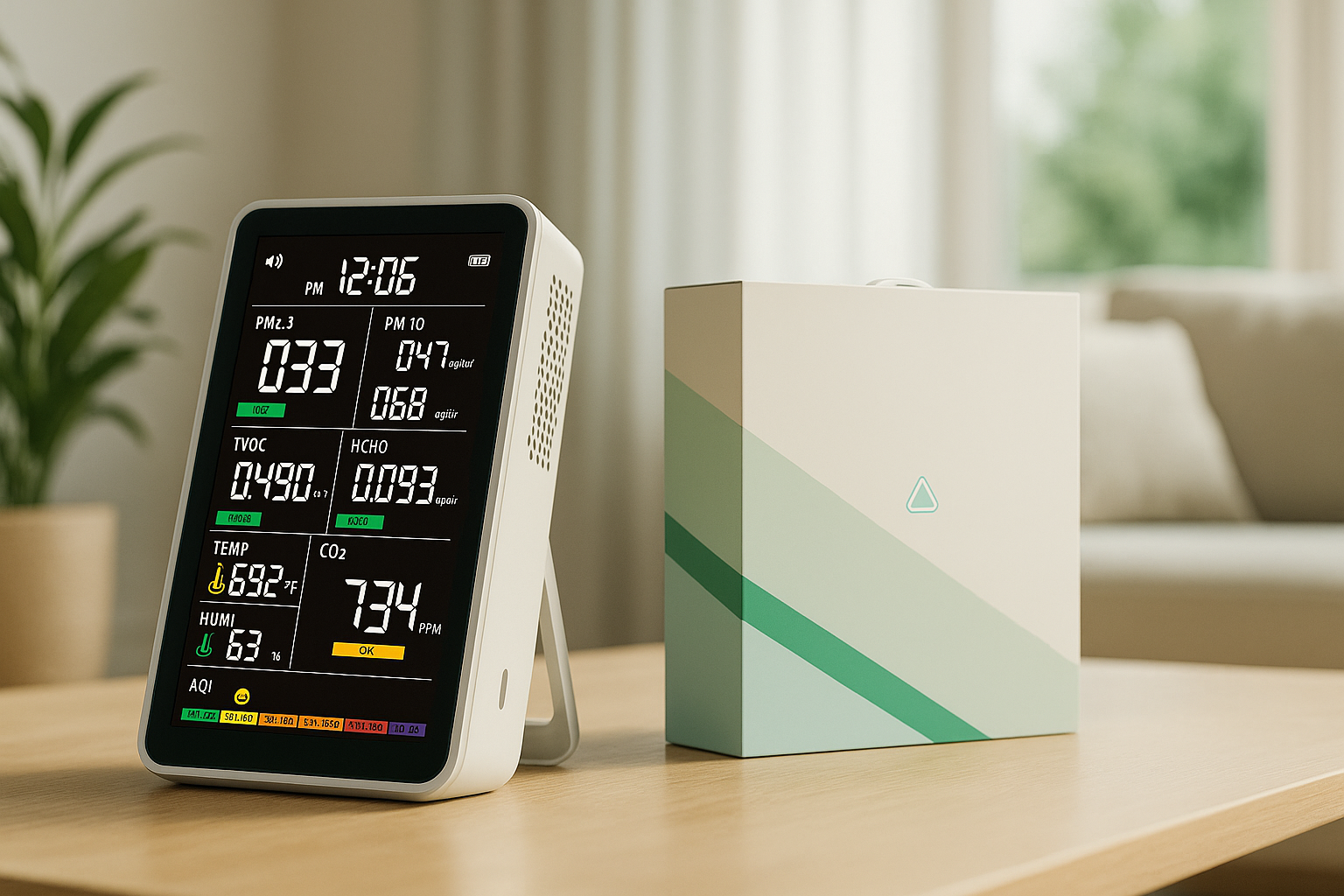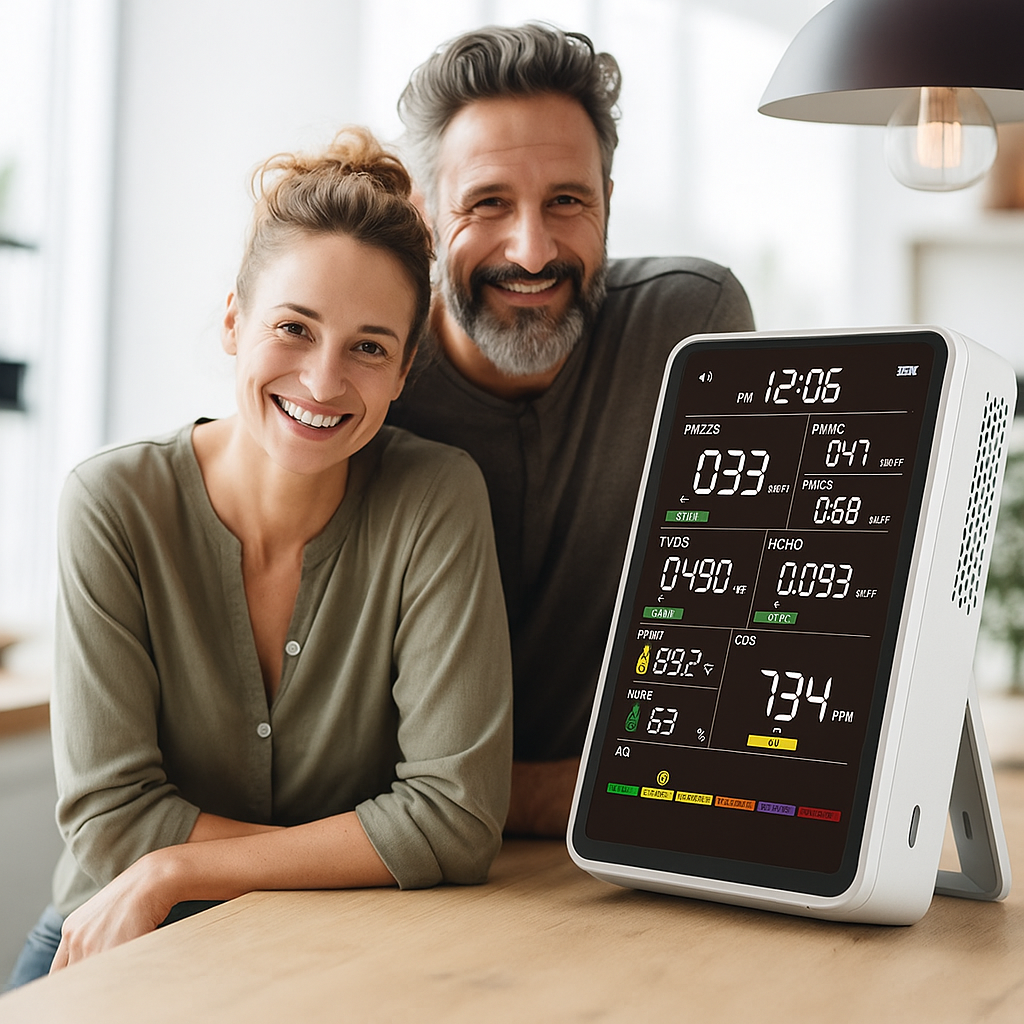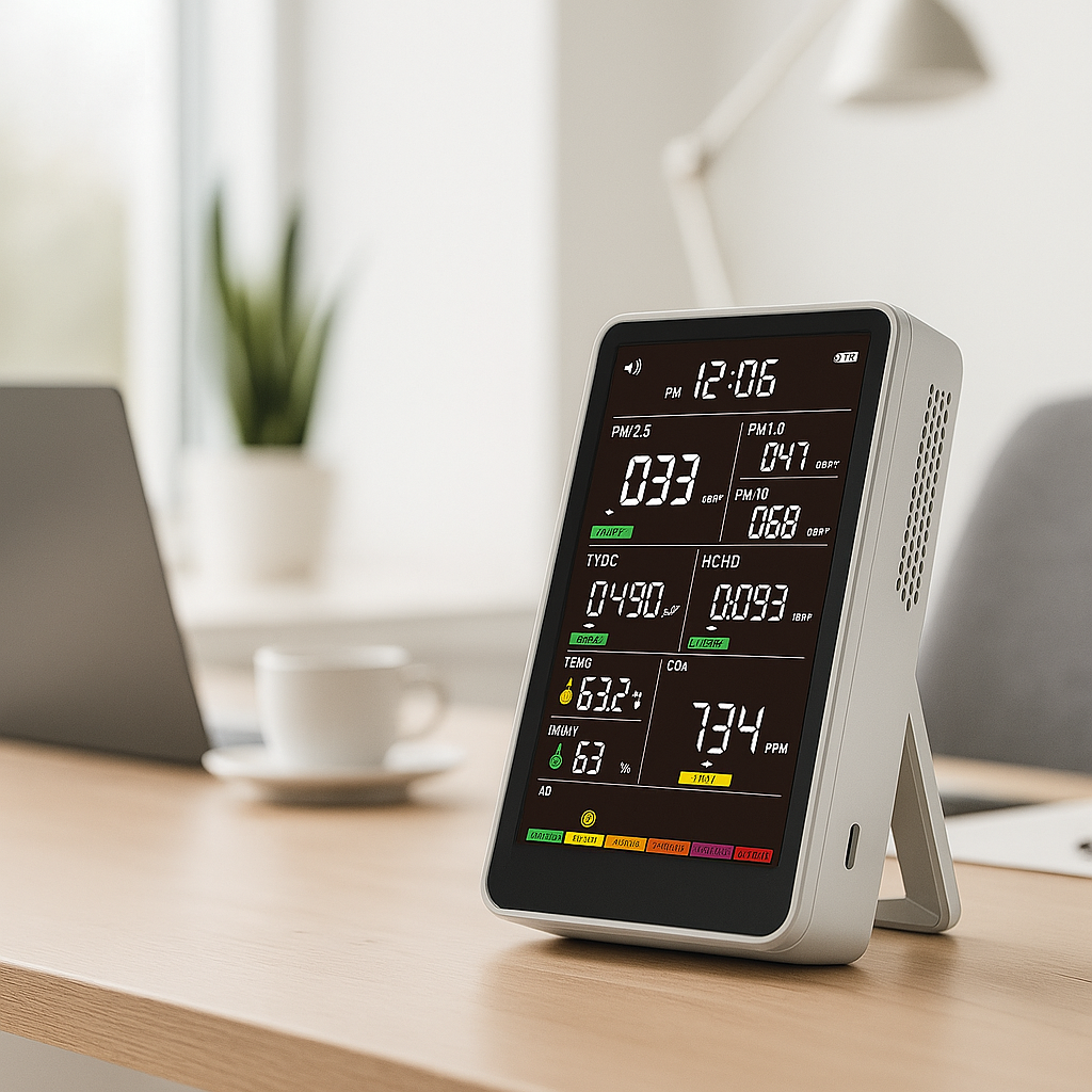 Each set includes precise sensors that measure dust, CO2, humidity, temperature, TVOC, and HCHO. Data updates instantly, while color indicators display the current air condition. Choose the setup that fits your home, office, or full living area.